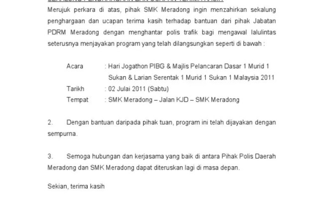 Contoh surat penghargaan dan terima kasih atas perkhidmatan bagikan contoh.